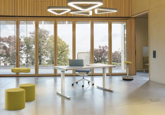 Postazioni Dinamiche: Tavoli regolabili, elevabili e sistemi configurabili che permettono di passare rapidamente dal lavoro individuale al brainstorming di gruppo.
