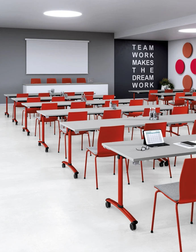 Il dinamismo è parte del benessere. I nostri sistemi di arredo modulare permettono di riconfigurare la sala in pochi gesti, creando sempre l'ambiente perfetto per ogni tipologia di incontro.
