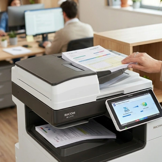 - Si scansionano contratti firmati, certificati medici, moduli per ferie o note spese. Dal pannello Ricoh, l'utente sceglie la categoria (es. "Documenti Personale") e seleziona il nome del dipendente da una lista protetta.