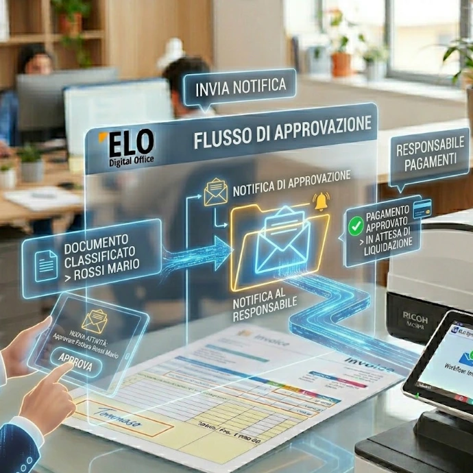 ELO avvia automaticamente un flusso di approvazione (es: "Invia al responsabile per il pagamento").
