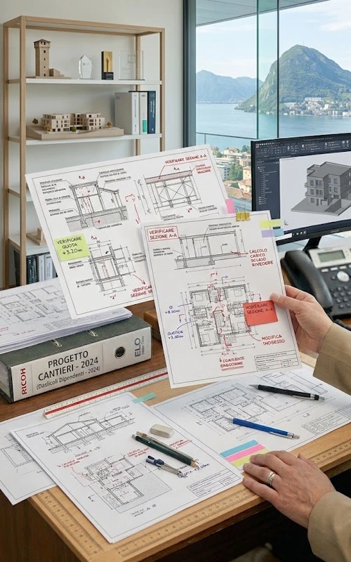 Verbali e disegni tecnici che viaggiano tra cantiere e ufficio, sporcandosi o andando smarriti.