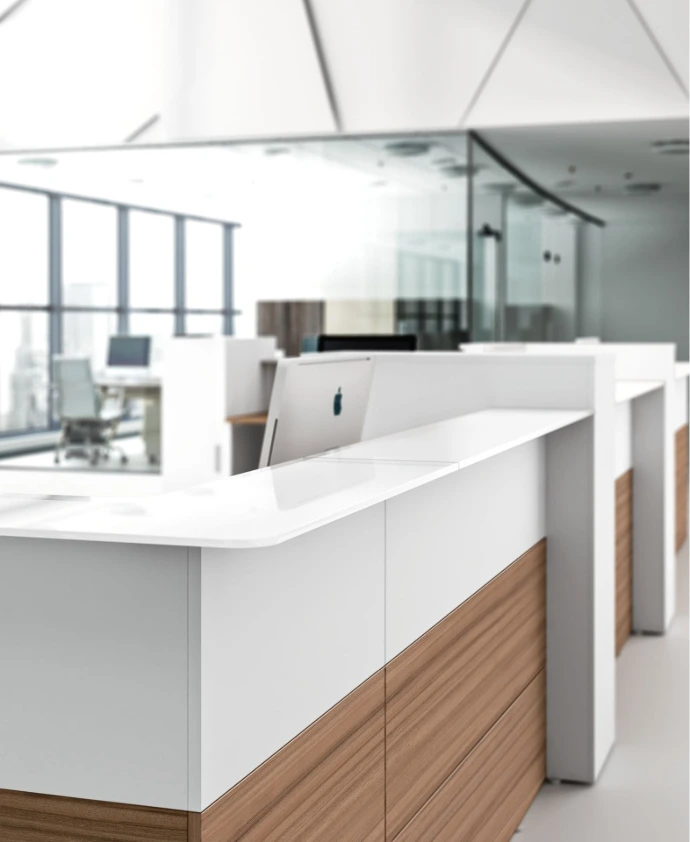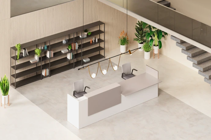 L'area accoglienza è molto più di un semplice punto di passaggio: è il confine tra il mondo esterno e il tuo universo professionale. Progettiamo soluzioni che sanno accogliere con eleganza e trasmettere immediatamente i valori, l'affidabilità e lo stile del tuo brand.