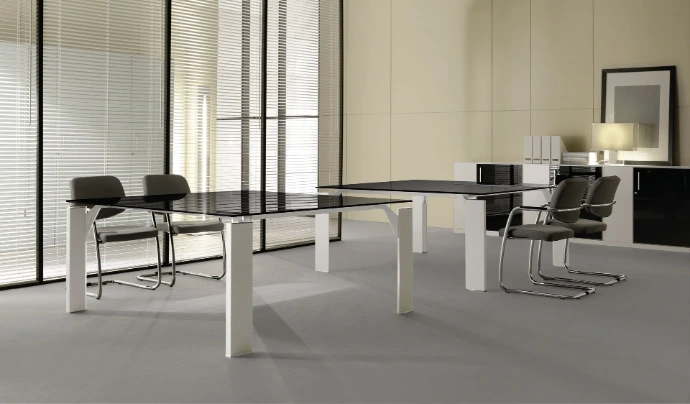 Per un impatto direzionale, consigliamo il legno essenza o il cristallo. Per sale operative ad uso intensivo, le finiture melaminiche di alta qualità sono la scelta migliore per resistenza ai graffi e facilità di manutenzione.