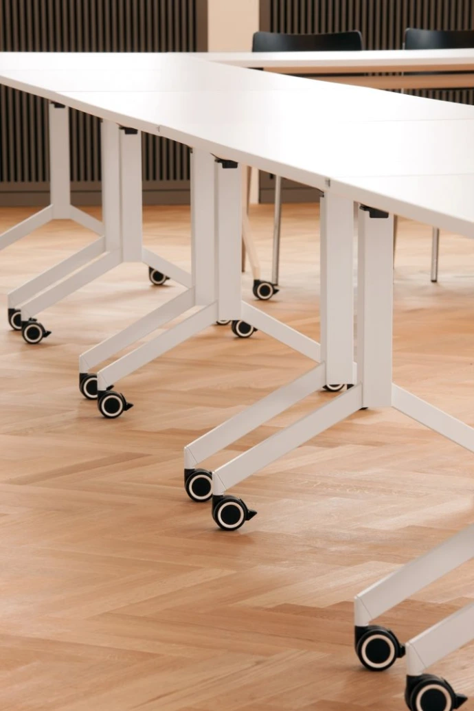 Modularità Infinita: Dai grandi tavoli monoblocco per i board direzionali alle composizioni modulari e riconfigurabili per workshop e sessioni di training dinamiche.